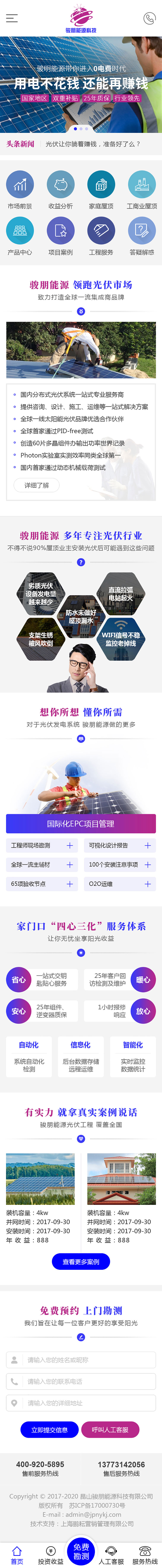 昆山骏朋能源科技有限公司于2015年08月10日成立。法定代表人梁姗姗,公司经营范围包括:太阳能光伏光电产品的技术开发;太阳能光伏设备的销售及安装等。太阳能光伏光电产品的技术开发;太阳能光伏设备的销售及安装;防水材料、保温材料的销售;内外墙保温工程、涂装工程的设计、施工。