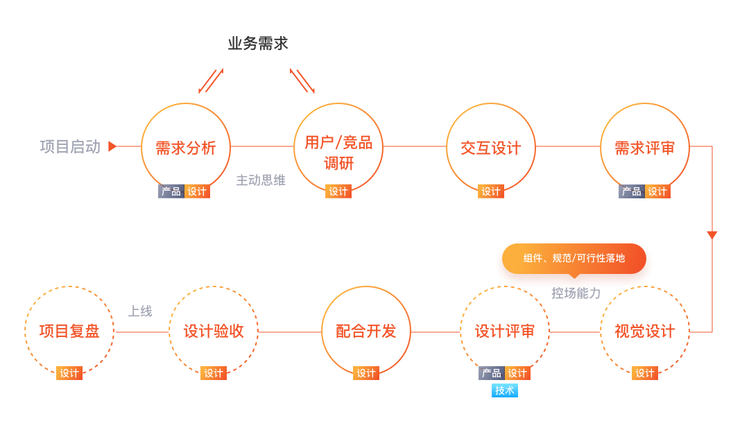 通常来说,设计大都处于项目流程中的下游环节,如果设计师在团队中仅仅处于“资源”的角色,缺乏主动参与和对业务场景的敏锐洞悉能力,被动接受沟通,无论是在理解上的偏差还是需求变更信息滞后的情况,都会影响设计方案的质量和进度,其次在用户体验问题的优先级上也会被降低,设计师很难有话语权。如何才能改善这个情况呢?