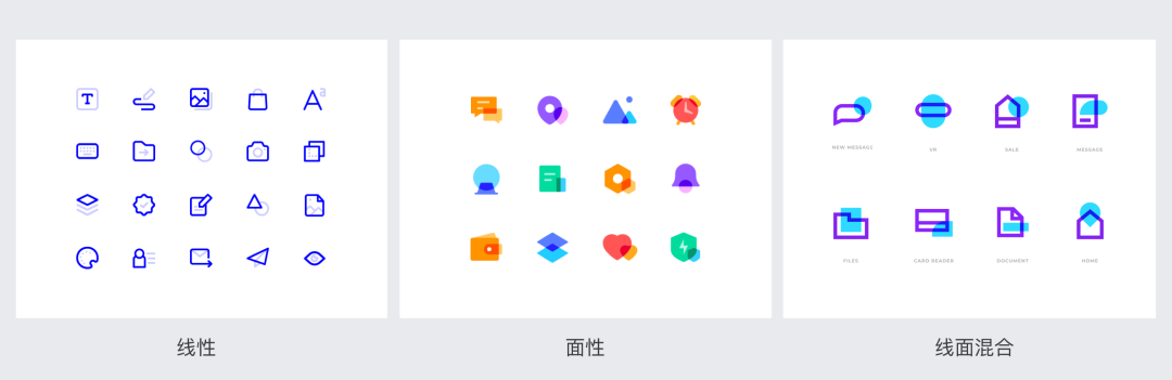 线性:元素单一、表现力弱,但线条本身简练、可塑性强,可以通过对线条的设计,塑造可爱、专业、严谨等多种风格。所以线性图标在系统图标中使用率最高。