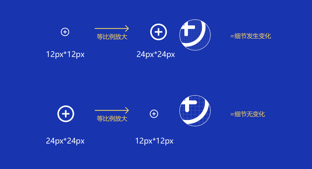 在设计好样式、定义了配色之后,图标设计中最基础也是最重要的一步来了:保持图标的视觉一致性。如果一组图标在页面中大大小小,即使设计得再炫酷,也是一组不规范的图标。