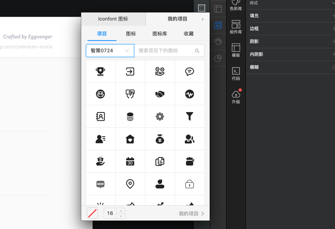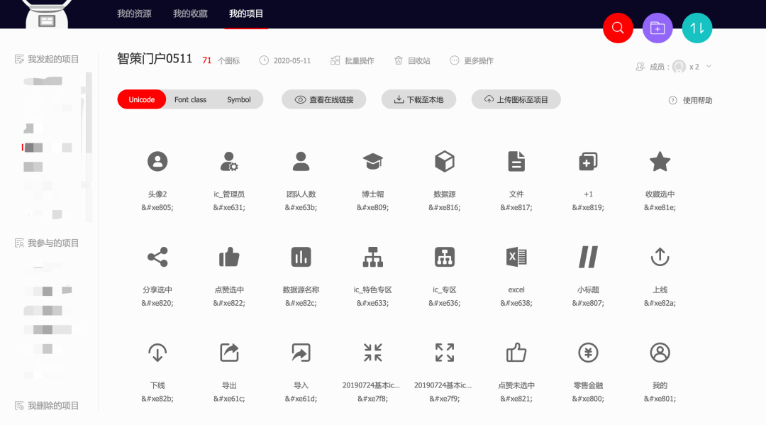 阿里的iconfont非常适合图标项目管理与团队协作(https://www.iconfont.cn/)。我们把图标上传到创建的项目中,配合插件“kithen”就可以在sketch中随时查看和调用相应项目中的图标。