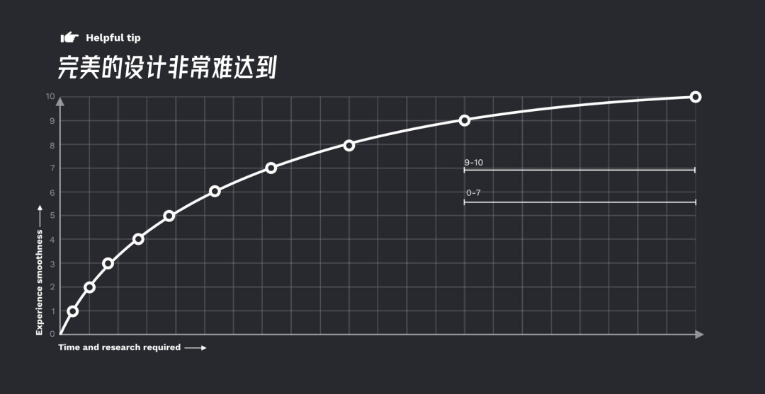 没有完美的设计,总有改进的空间。但是出色的用户体验要付出巨大的努力。在已经很好的设计中创造一个微小的改进将需要成倍的资源投入,而不是把一些不好的东西变成一个普通的设计。但不要因此而气馁,在伟大的著作《从 0 到 1:创业笔记》中,作者 Peter Thiel 解释说,微小的改进只能帮助走到当前。有时候,想要大幅度改善体验,你需要将其彻底重塑。