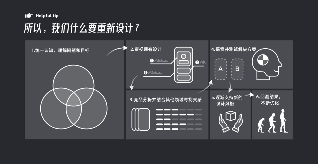 本文介绍的过程将适用于各种改版设计范围 —— 从功能或视图层级到完整的应用程序的改版设计。这些建议将帮助你避免陷阱并快速交付设计价值,因为这是基于我们从数百次改版设计、碰撞摩擦中获得的经验。